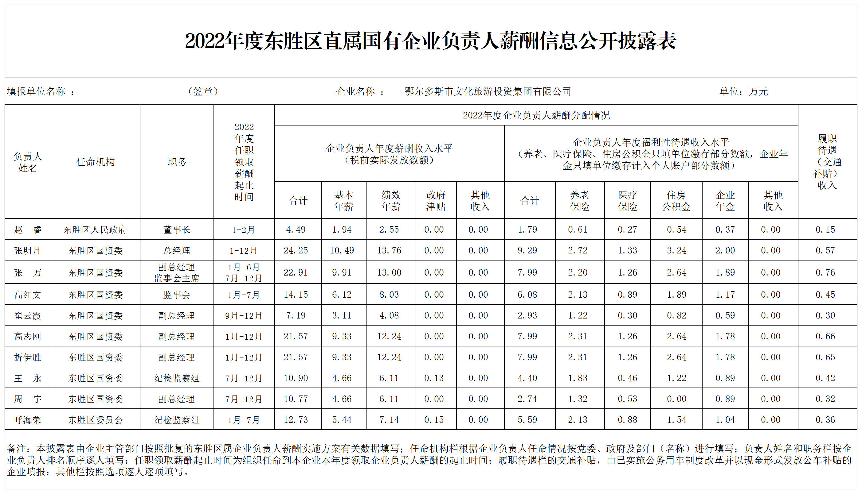 2022年度東勝區(qū)直屬國有企業(yè)負(fù)責(zé)人薪酬信息公開披露表
