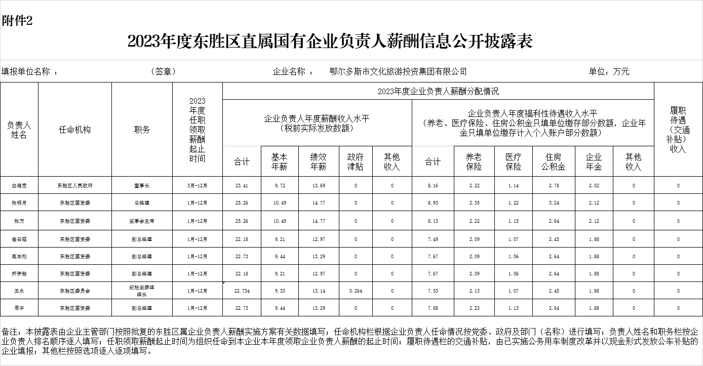 2023年度東勝區(qū)直屬?lài)?guó)有企業(yè)負(fù)責(zé)人薪酬信息公開(kāi)披露表